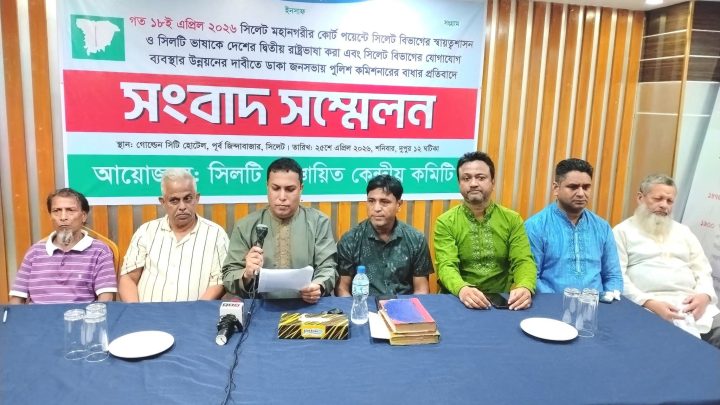 শনিবার (২৫ এপ্রিল) দুপুরে সিলেট নগরীর একটি হোটেলের কনফারেন্স রুমে আয়োজিত সংবাদ সম্মেলনে এ দাবি জানানো হয়। একইসঙ্গে সিলেটের যোগাযোগ ব্যবস্থার উন্নয়নের দাবিও তুলে ধরে সংগঠনটি।
